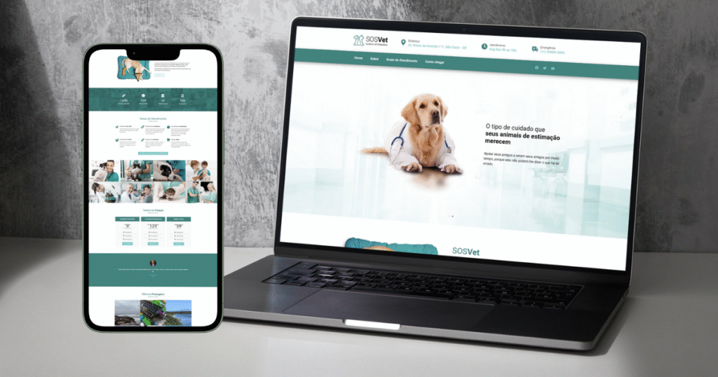 Aqui temos um site mais completo, com mais páginas e mais elementos, feito para uma Clínica Veterinária.